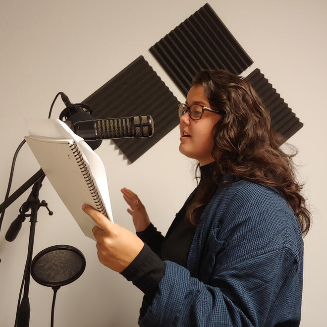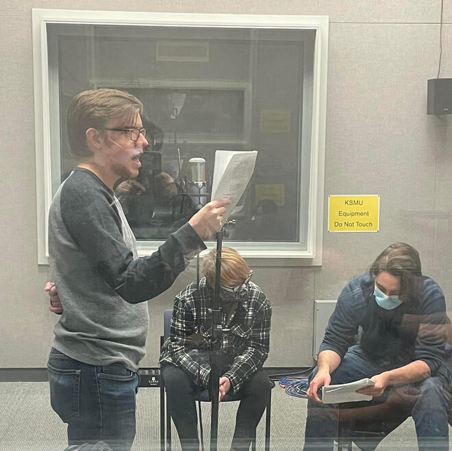 CastingCasting was done entirely by Willow Onken and entirely remotely, as campus was still shut down due to COVID-19. The pandemic was one reason, among many, that the production was pitched as a podcast. Character breakdowns and sides were posted, and after outreach to the theatre department, local theatres, and social media, the auditions came rolling in—over seventy of them! Eventually, the project found its lead cast: Steven Horn as Mithra, Lourdes Westbrock as Gwyn, and Megan Marks as the narrator Indra.