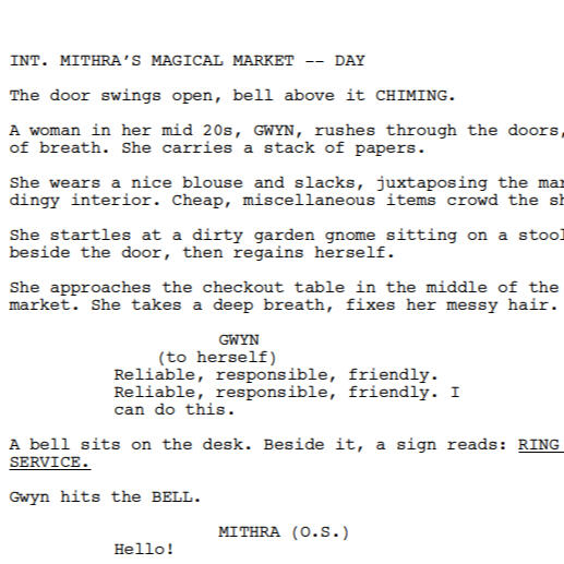 Pre-ProductionIn 2021, two students from the original web series class—Willow Onken and Paul McFerron—went on to pursue MFAs and began pre-production on a new Mithra's Magical Market—this time as a narrative podcast with a $0 budget. Together, they adapted the original scripts, which involved cutting all the visuals, including some incredibly funny visual gags (trust us). They also recruited artist Morgana Johnson, who illustrated the first ever concept art of the series.